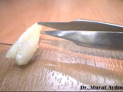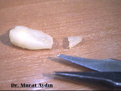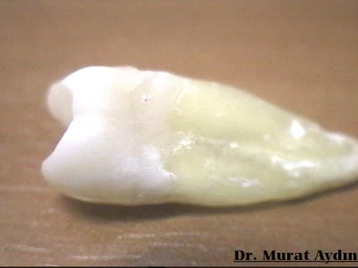 ağzından ortodontik tedavi amacı ile çekilmiştir.Yakından bakıldığında dişin en