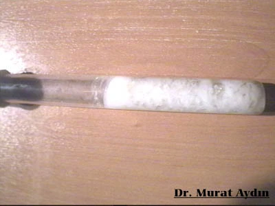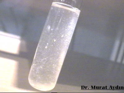 tuzları yeniden çöker. Tüpün dibinde görünen beyaz jöle ve tortular,
